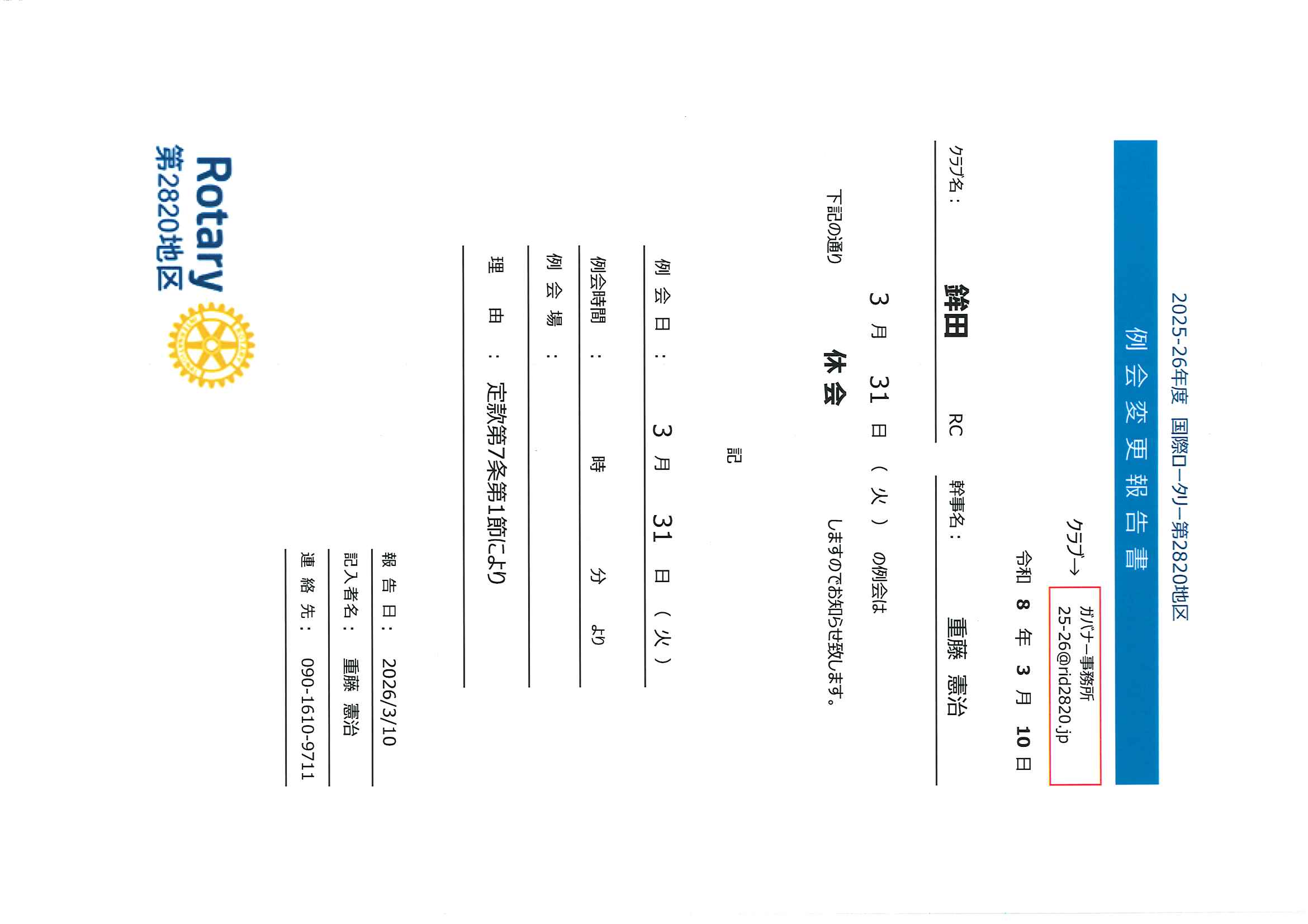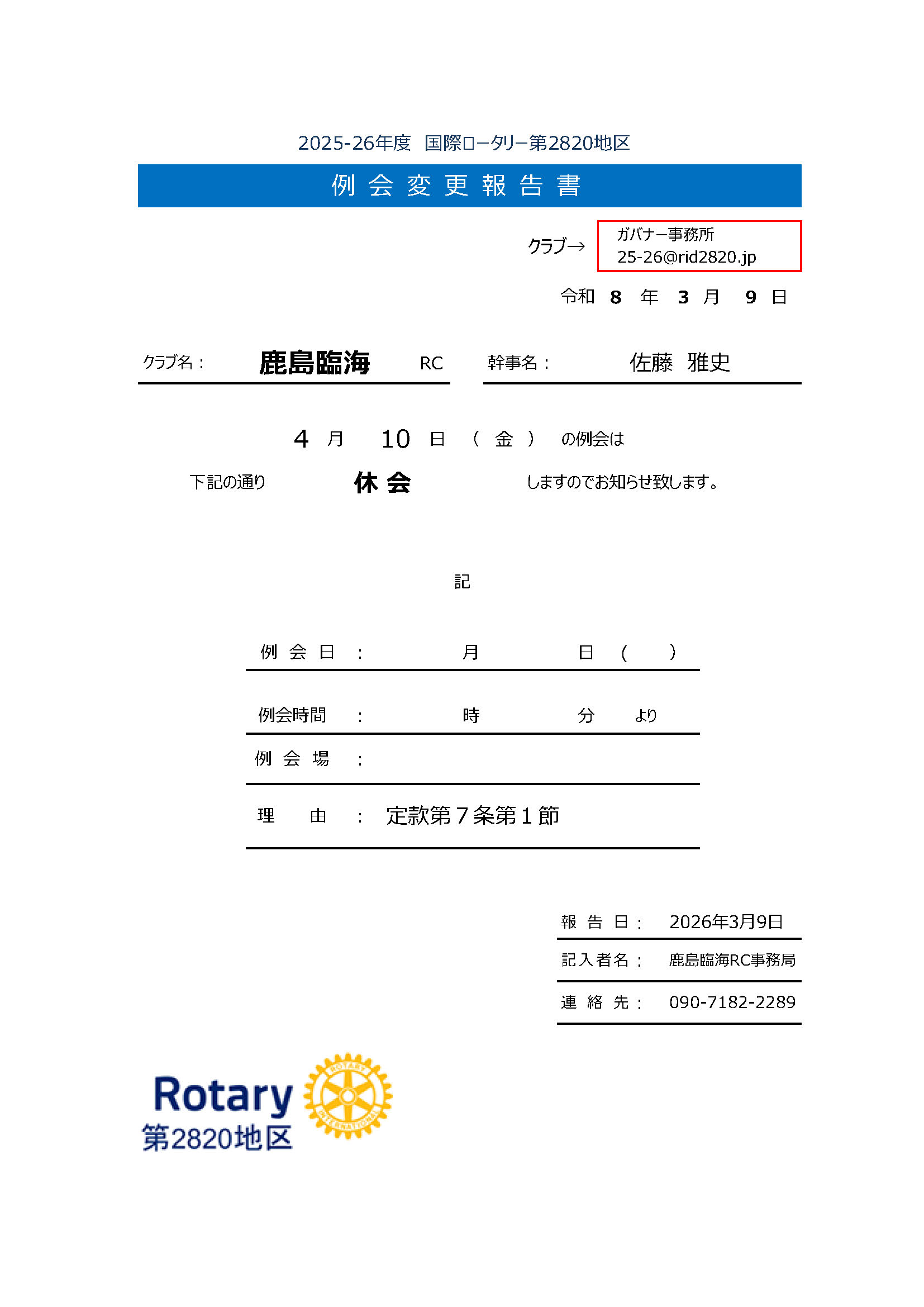2026年3月より水戸西RCの例会場が変更になっています。